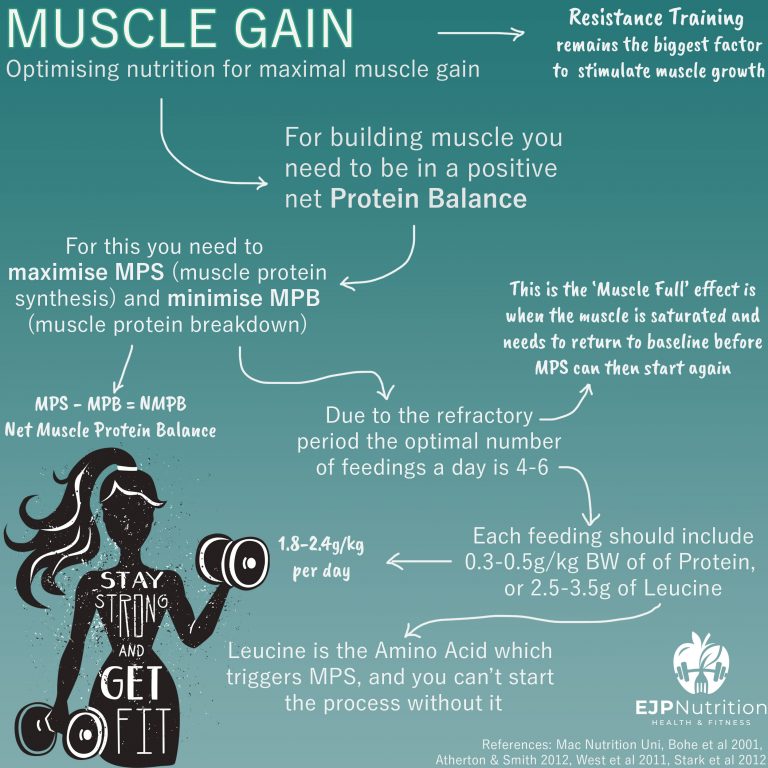 Other factors for your gains would be timing your carbohydrates to ensure you training quality is as high as possible. Carbs don’t tend to be important post-workout for MPS, but may help replenish your muscle glycogen depending on how soon you’ll be training next. Some supplements will also be beneficial – certainly creatine, and to help performance potentially caffeine. Ensure you are getting adequate sleep for recovery, and you don’t have any micronutrient deficiencies within your diet.